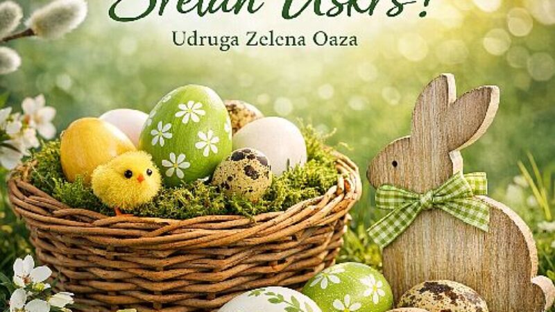 u ime Zelene Oaze želimo vam sretan, radostan i miran Uskrs. Neka vam blagdanski dani donesu obilje nade, zajedništva i novih početaka — baš kao što priroda ovih dana ponovno oživljava.